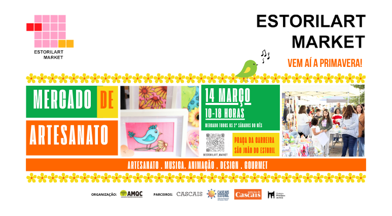 Mercado de Artesanato e Artes Decorativas, decorre no 2º Sábado de cada mês. No mês de Março, dia 14, na Praça da Carreira em S. João do Estoril entre as 10h00 e as 18h00 vão estar cerca de 40 Bancas de Artesanato com peças únicas e Produtos Gourmet.